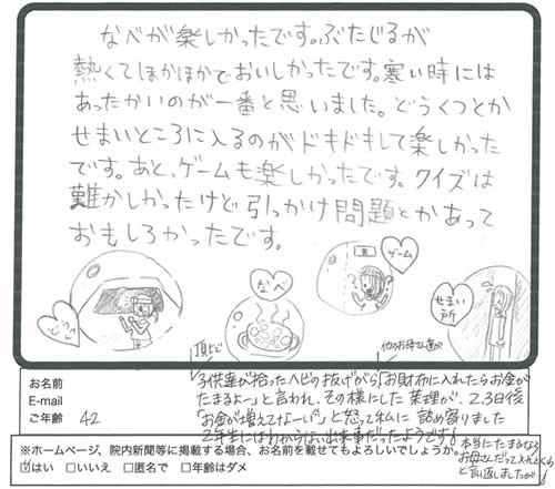 キムチ鍋は辛くて、大人には好評でしたが、子どもたちには豚汁の方が人気でした。