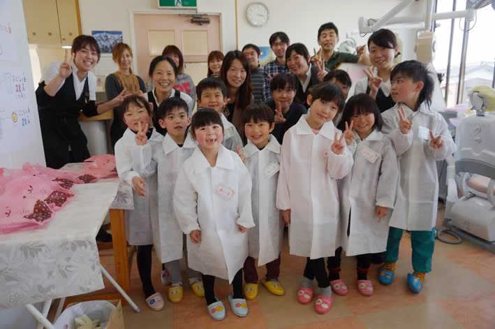 歯科医院に興味を持って、まず治療に楽しく来れる事、そして仕事を体験して、大人になった時に歯科関係の仕事(歯科医師、歯科衛生士、歯科技工師)を選んでくれるお子さんがいたら良いなあということを考えながらのイベントです。